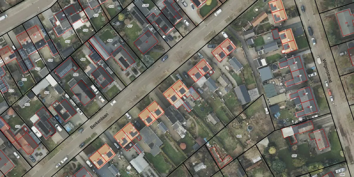 Het perceel waarop Berkenlaan 54 staat heeft een oppervlakte van 1,4 ha. Dit is een zeer groot perceel. De perceeloppervlakte wordt geregistreerd door het Kadaster. Gedetailleerde informatie over de maten van dit perceel kunt u vinden in het rapport Kadastrale kaart met maatvoering van Berkenlaan 54.