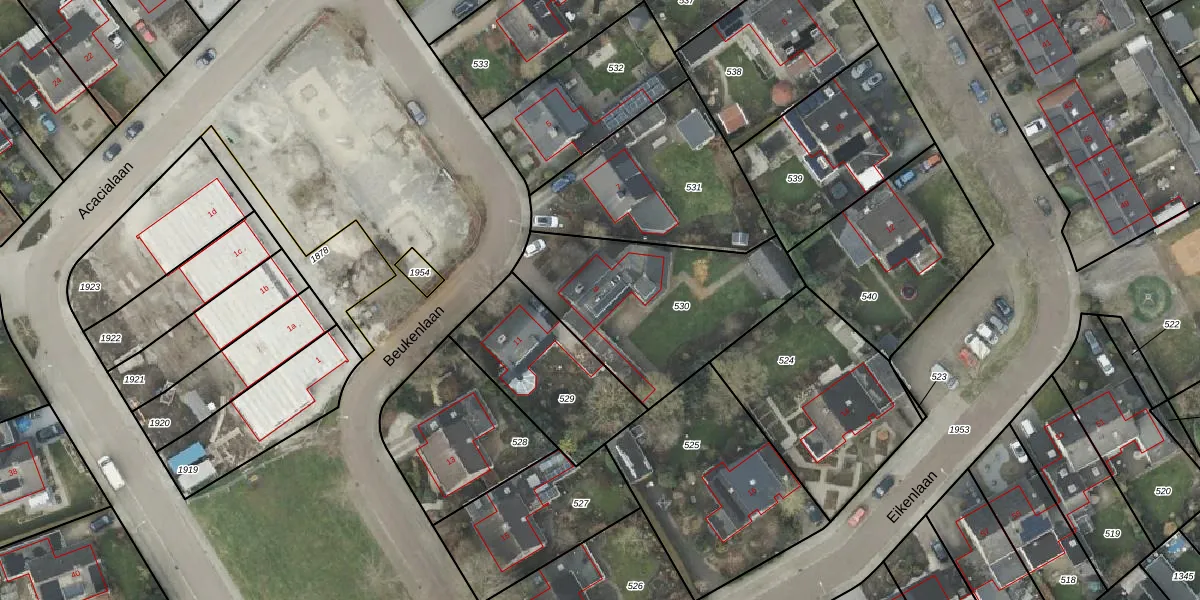 Het perceel waarop Beukenlaan 9 staat heeft een oppervlakte van 813 m². Dit is een groot perceel. De perceeloppervlakte wordt geregistreerd door het Kadaster. Gedetailleerde informatie over de maten van dit perceel kunt u vinden in het rapport Kadastrale kaart met maatvoering van Beukenlaan 9.