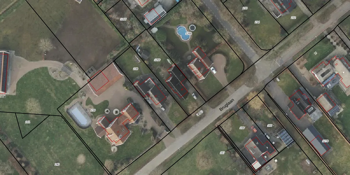 Bruglaan 68 is gelegen op kadastraal perceel AML01R1266. Deze kadastrale aanduiding is uniek en wordt gebruikt door het Kadaster om eigendomsrechten en andere zakelijke rechten vast te leggen. Het perceel maakt onderdeel uit van de kadastrale gemeente Ambt-Almelo.