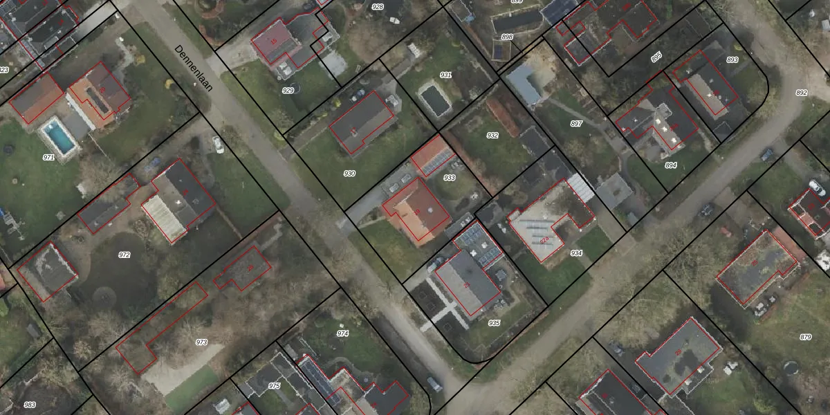 Dennenlaan 19 is gelegen op kadastraal perceel AML01R933. Deze kadastrale aanduiding is uniek en wordt gebruikt door het Kadaster om eigendomsrechten en andere zakelijke rechten vast te leggen. Het perceel maakt onderdeel uit van de kadastrale gemeente Ambt-Almelo.