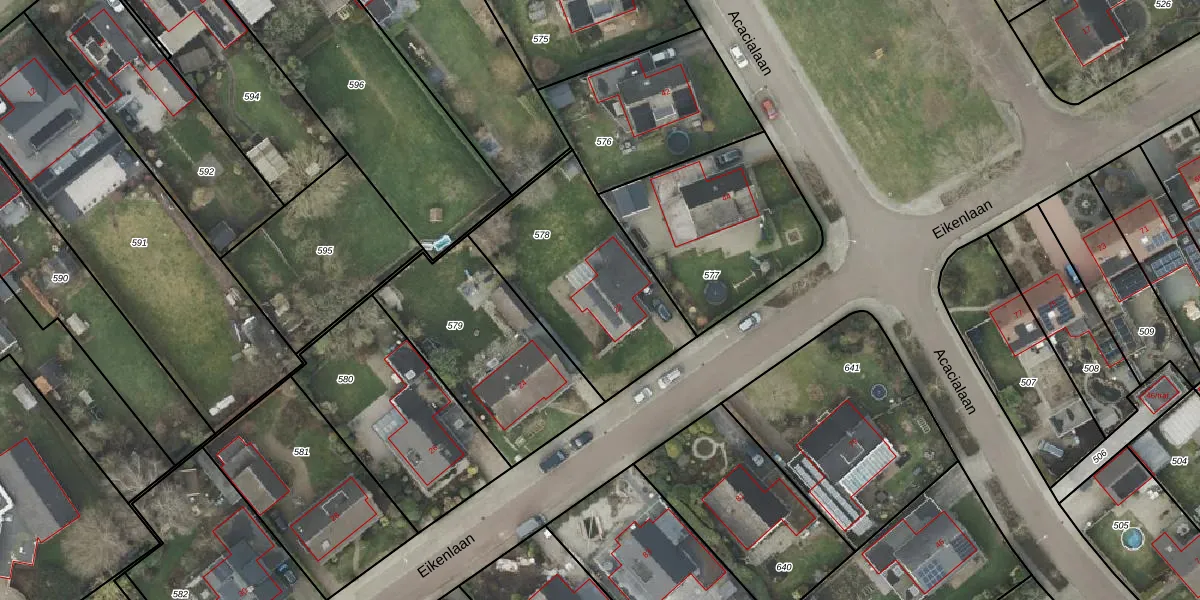 Het perceel waarop Eikenlaan 22 staat heeft een oppervlakte van 738 m². Dit is een groot perceel. De perceeloppervlakte wordt geregistreerd door het Kadaster. Gedetailleerde informatie over de maten van dit perceel kunt u vinden in het rapport Kadastrale kaart met maatvoering van Eikenlaan 22.