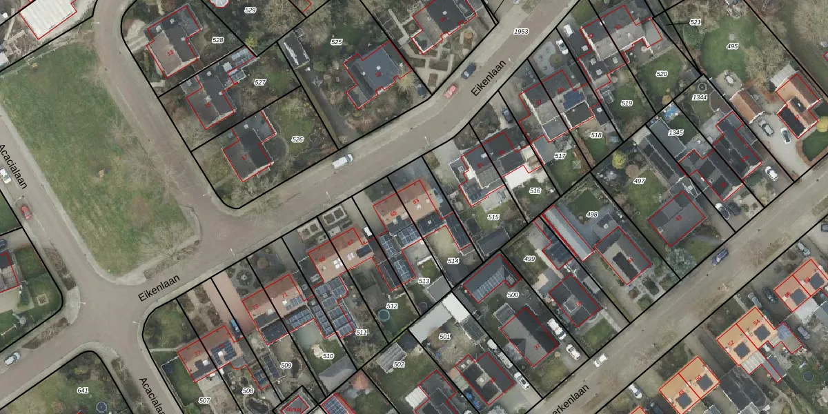 Eikenlaan 63 is gelegen op kadastraal perceel AML01R514. Deze kadastrale aanduiding is uniek en wordt gebruikt door het Kadaster om eigendomsrechten en andere zakelijke rechten vast te leggen. Het perceel maakt onderdeel uit van de kadastrale gemeente Ambt-Almelo.