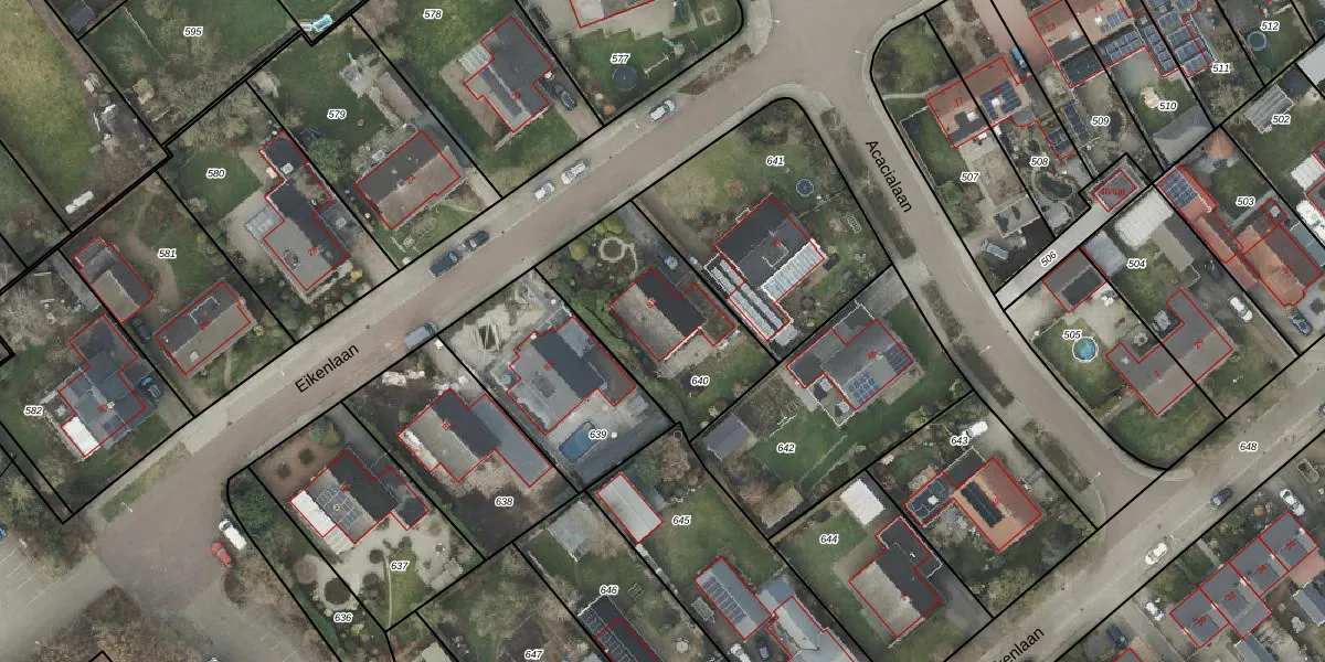Het perceel waarop Eikenlaan 81 staat heeft een oppervlakte van 608 m². Dit is een groot perceel. De perceeloppervlakte wordt geregistreerd door het Kadaster. Gedetailleerde informatie over de maten van dit perceel kunt u vinden in het rapport Kadastrale kaart met maatvoering van Eikenlaan 81.