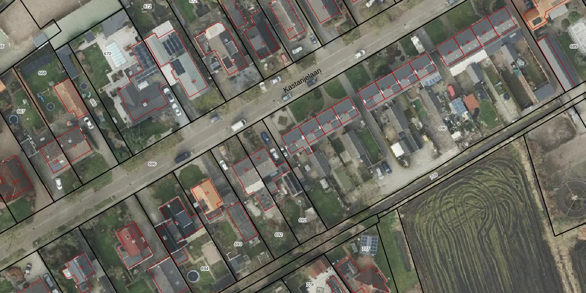 Kastanjelaan 30 is gelegen op kadastraal perceel AML01R690. Deze kadastrale aanduiding is uniek en wordt gebruikt door het Kadaster om eigendomsrechten en andere zakelijke rechten vast te leggen. Het perceel maakt onderdeel uit van de kadastrale gemeente Ambt-Almelo.