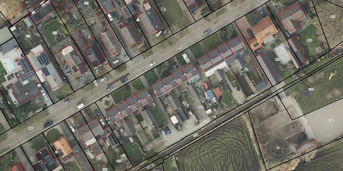 Kastanjelaan 40 is gelegen op kadastraal perceel AML01R690. Deze kadastrale aanduiding is uniek en wordt gebruikt door het Kadaster om eigendomsrechten en andere zakelijke rechten vast te leggen. Het perceel maakt onderdeel uit van de kadastrale gemeente Ambt-Almelo.