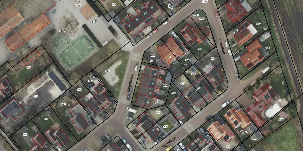 Het perceel waarop Molenhoek 8 staat heeft een oppervlakte van 615 m². Dit is een groot perceel. De perceeloppervlakte wordt geregistreerd door het Kadaster. Gedetailleerde informatie over de maten van dit perceel kunt u vinden in het rapport Kadastrale kaart met maatvoering van Molenhoek 8.