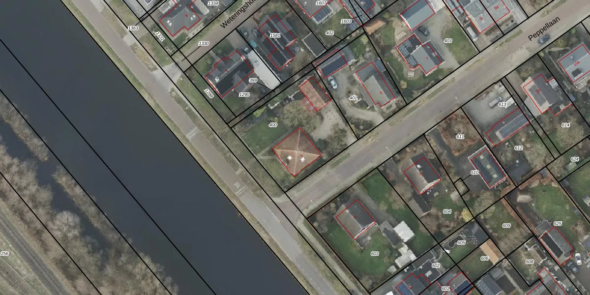 Peppellaan 1 is gelegen op kadastraal perceel AML01R400. Deze kadastrale aanduiding is uniek en wordt gebruikt door het Kadaster om eigendomsrechten en andere zakelijke rechten vast te leggen. Het perceel maakt onderdeel uit van de kadastrale gemeente Ambt-Almelo.