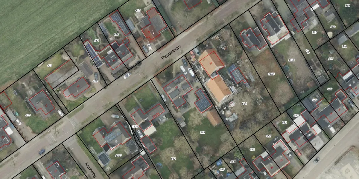 Peppellaan 20 is gelegen op kadastraal perceel AML01R563. Deze kadastrale aanduiding is uniek en wordt gebruikt door het Kadaster om eigendomsrechten en andere zakelijke rechten vast te leggen. Het perceel maakt onderdeel uit van de kadastrale gemeente Ambt-Almelo.