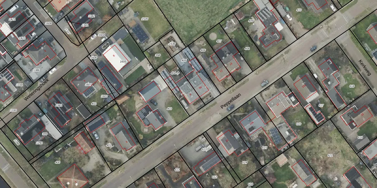 Peppellaan 9 is gelegen op kadastraal perceel AML01R404. Deze kadastrale aanduiding is uniek en wordt gebruikt door het Kadaster om eigendomsrechten en andere zakelijke rechten vast te leggen. Het perceel maakt onderdeel uit van de kadastrale gemeente Ambt-Almelo.