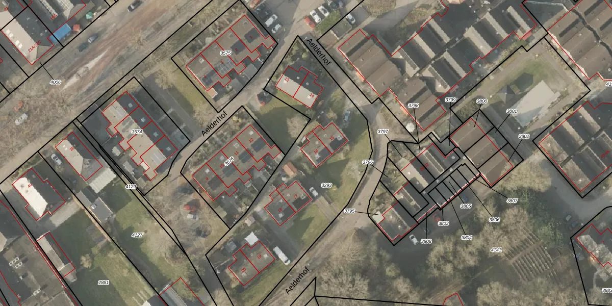 Het perceel waarop Aelderhof 16 staat heeft een oppervlakte van 2078 m². Dit is een zeer groot perceel. De perceeloppervlakte wordt geregistreerd door het Kadaster. Gedetailleerde informatie over de maten van dit perceel kunt u vinden in het rapport Kadastrale kaart met maatvoering van Aelderhof 16.