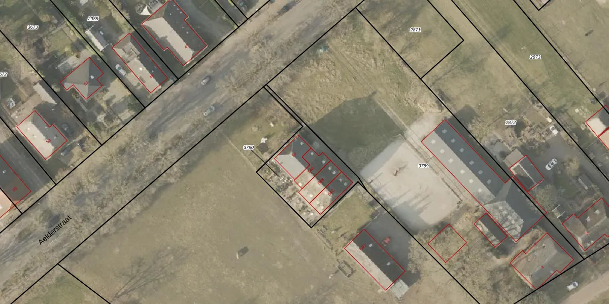 Aelderstraat 54 is gelegen op kadastraal perceel ZLO00I3790. Deze kadastrale aanduiding is uniek en wordt gebruikt door het Kadaster om eigendomsrechten en andere zakelijke rechten vast te leggen. Het perceel maakt onderdeel uit van de kadastrale gemeente Zweeloo.