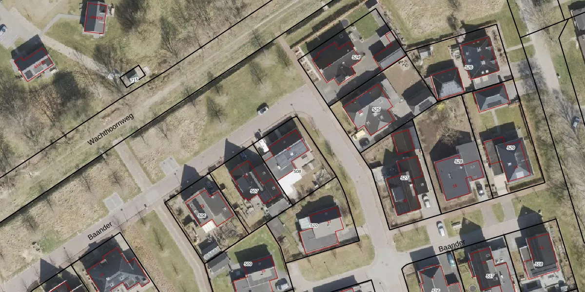 Het perceel waarop Baander 19 staat heeft een oppervlakte van 447 m². Dit is een groot perceel. De perceeloppervlakte wordt geregistreerd door het Kadaster. Gedetailleerde informatie over de maten van dit perceel kunt u vinden in het rapport Kadastrale kaart met maatvoering van Baander 19.