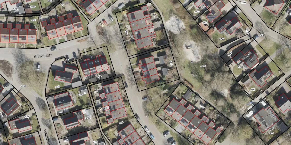 Het perceel waarop Brinkmaten 40 staat heeft een oppervlakte van 693 m². Dit is een groot perceel. De perceeloppervlakte wordt geregistreerd door het Kadaster. Gedetailleerde informatie over de maten van dit perceel kunt u vinden in het rapport Kadastrale kaart met maatvoering van Brinkmaten 40.