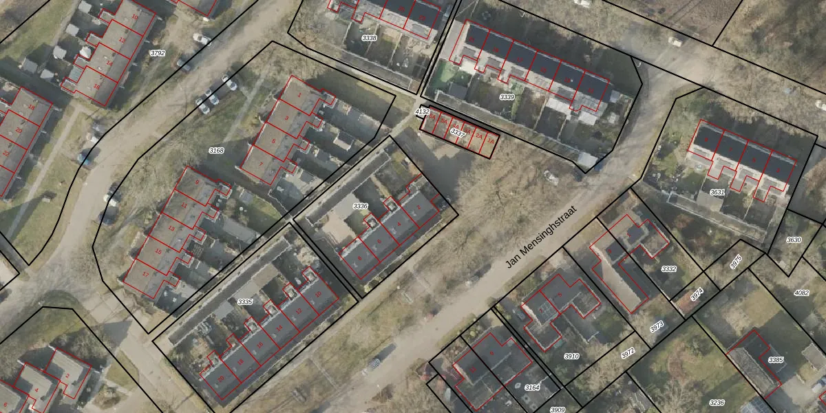 Jan Mensinghstraat 2 is gelegen op kadastraal perceel ZLO00I3336. Deze kadastrale aanduiding is uniek en wordt gebruikt door het Kadaster om eigendomsrechten en andere zakelijke rechten vast te leggen. Het perceel maakt onderdeel uit van de kadastrale gemeente Zweeloo.