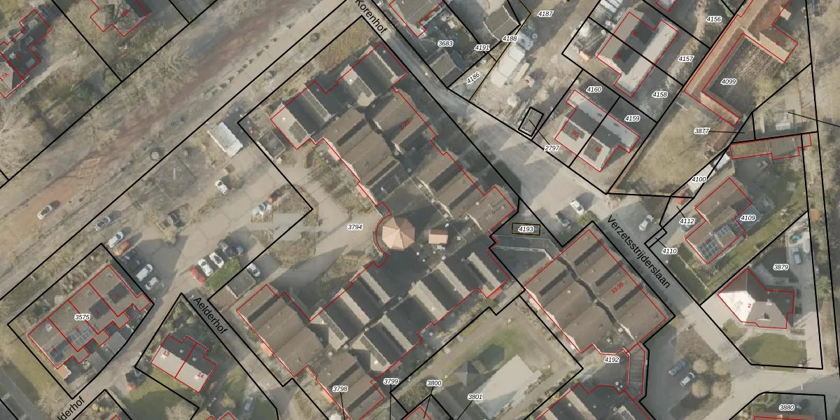 Het perceel waarop Korenhof 11 staat heeft een oppervlakte van 4190 m². Dit is een zeer groot perceel. De perceeloppervlakte wordt geregistreerd door het Kadaster. Gedetailleerde informatie over de maten van dit perceel kunt u vinden in het rapport Kadastrale kaart met maatvoering van Korenhof 11.