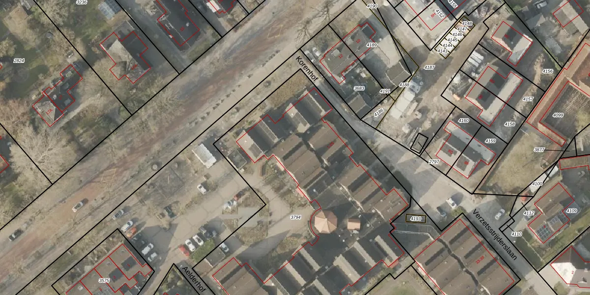 Het perceel waarop Korenhof 6 staat heeft een oppervlakte van 4190 m². Dit is een zeer groot perceel. De perceeloppervlakte wordt geregistreerd door het Kadaster. Gedetailleerde informatie over de maten van dit perceel kunt u vinden in het rapport Kadastrale kaart met maatvoering van Korenhof 6.