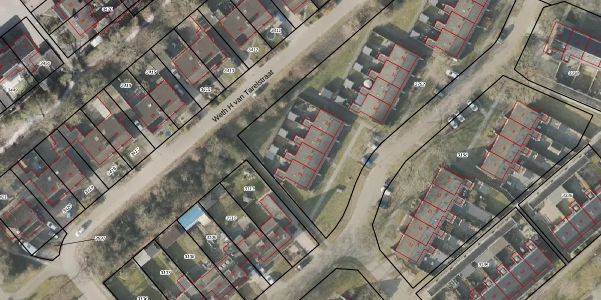 Het perceel waarop Markeweg 22 staat heeft een oppervlakte van 3395 m². Dit is een zeer groot perceel. De perceeloppervlakte wordt geregistreerd door het Kadaster. Gedetailleerde informatie over de maten van dit perceel kunt u vinden in het rapport Kadastrale kaart met maatvoering van Markeweg 22.