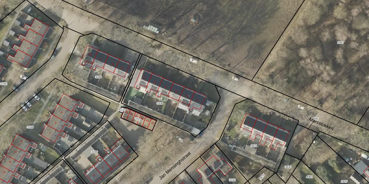 Het perceel waarop Marsstukken 13 staat heeft een oppervlakte van 1377 m². Dit is een zeer groot perceel. De perceeloppervlakte wordt geregistreerd door het Kadaster. Gedetailleerde informatie over de maten van dit perceel kunt u vinden in het rapport Kadastrale kaart met maatvoering van Marsstukken 13.