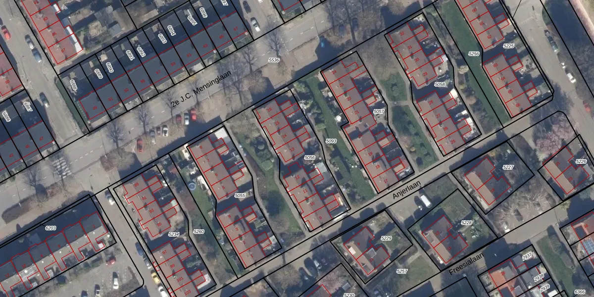 Het perceel waarop Anjerlaan 13 staat heeft een oppervlakte van 693 m². Dit is een groot perceel. De perceeloppervlakte wordt geregistreerd door het Kadaster. Gedetailleerde informatie over de maten van dit perceel kunt u vinden in het rapport Kadastrale kaart met maatvoering van Anjerlaan 13.