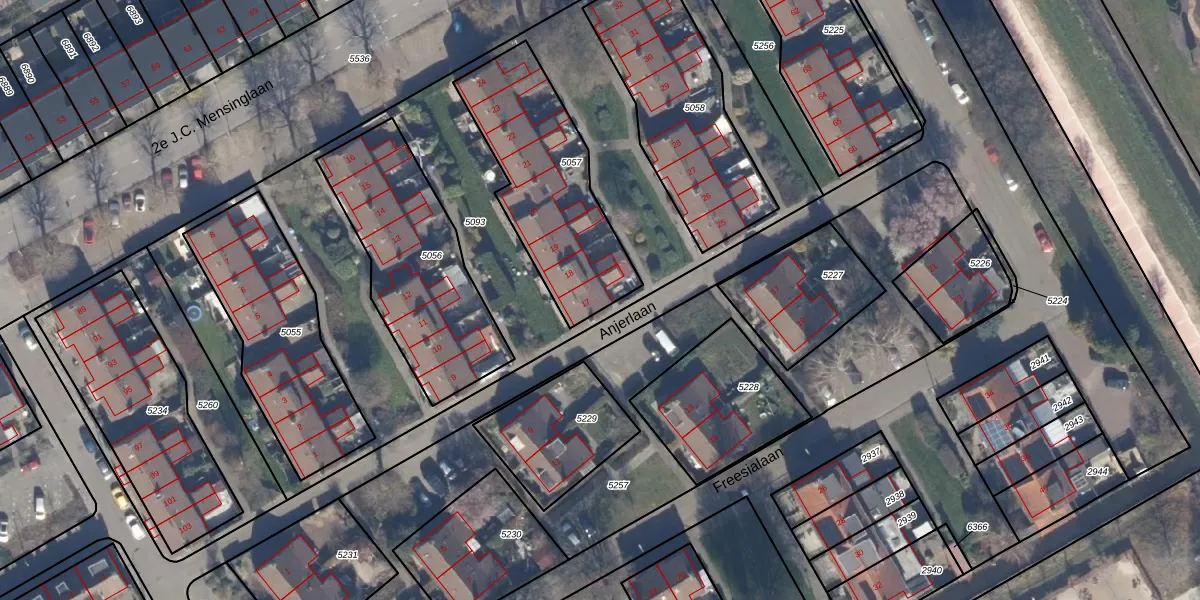 Het perceel waarop Anjerlaan 17 staat heeft een oppervlakte van 661 m². Dit is een groot perceel. De perceeloppervlakte wordt geregistreerd door het Kadaster. Gedetailleerde informatie over de maten van dit perceel kunt u vinden in het rapport Kadastrale kaart met maatvoering van Anjerlaan 17.
