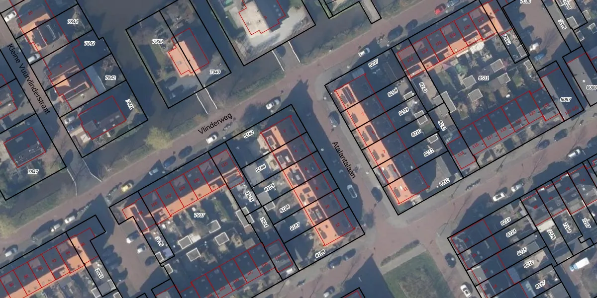 Gebruik de zoekbalk of klik op een perceel voor informatie over de adressen binnen dit perceel.
