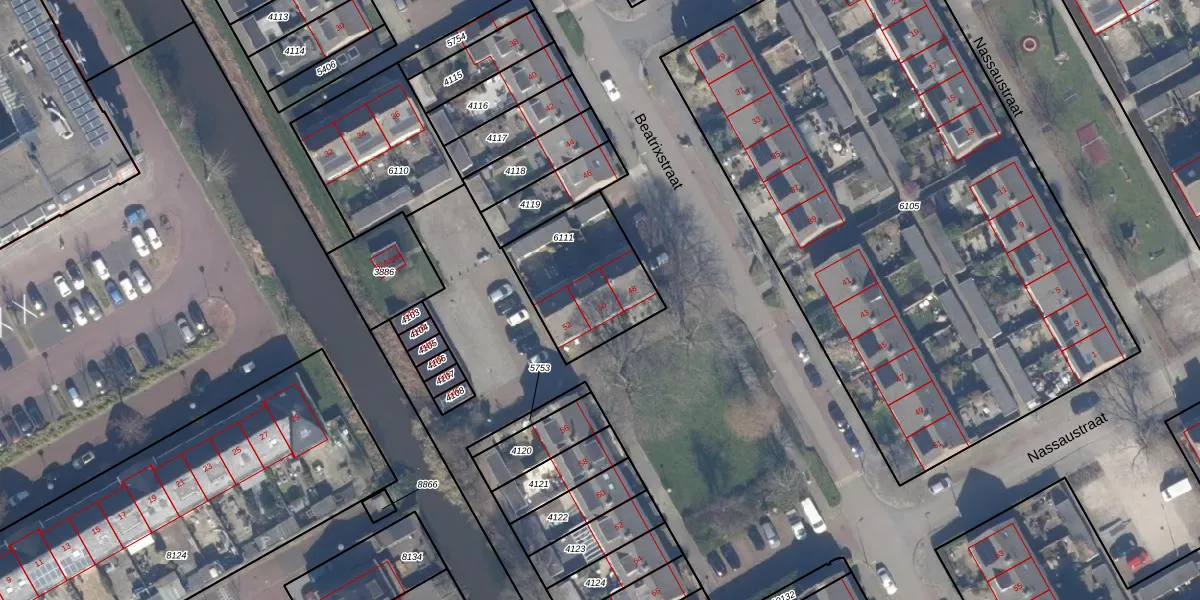 Beatrixstraat 50 is gelegen op kadastraal perceel AMR03B6111. Deze kadastrale aanduiding is uniek en wordt gebruikt door het Kadaster om eigendomsrechten en andere zakelijke rechten vast te leggen. Het perceel maakt onderdeel uit van de kadastrale gemeente Aalsmeer.