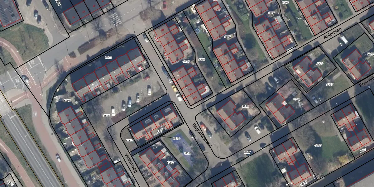 Het perceel waarop Begoniastraat 101 staat heeft een oppervlakte van 680 m². Dit is een groot perceel. De perceeloppervlakte wordt geregistreerd door het Kadaster. Gedetailleerde informatie over de maten van dit perceel kunt u vinden in het rapport Kadastrale kaart met maatvoering van Begoniastraat 101.
