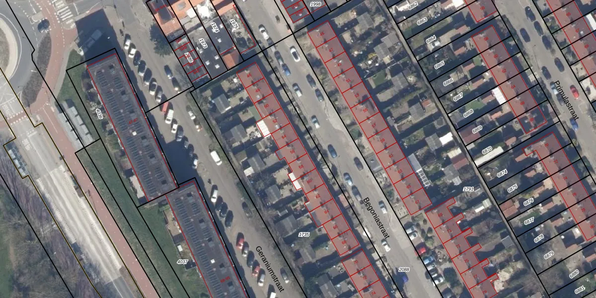 Het perceel waarop Begoniastraat 56 staat heeft een oppervlakte van 3139 m². Dit is een zeer groot perceel. De perceeloppervlakte wordt geregistreerd door het Kadaster. Gedetailleerde informatie over de maten van dit perceel kunt u vinden in het rapport Kadastrale kaart met maatvoering van Begoniastraat 56.
