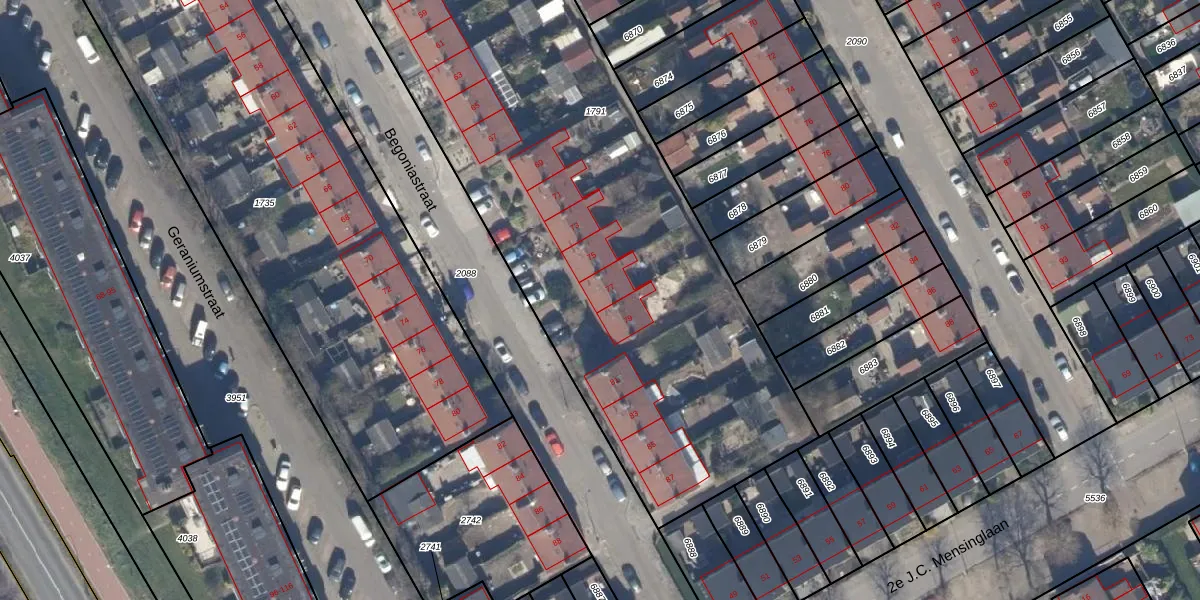 Het perceel waarop Begoniastraat 77 staat heeft een oppervlakte van 4416 m². Dit is een zeer groot perceel. De perceeloppervlakte wordt geregistreerd door het Kadaster. Gedetailleerde informatie over de maten van dit perceel kunt u vinden in het rapport Kadastrale kaart met maatvoering van Begoniastraat 77.
