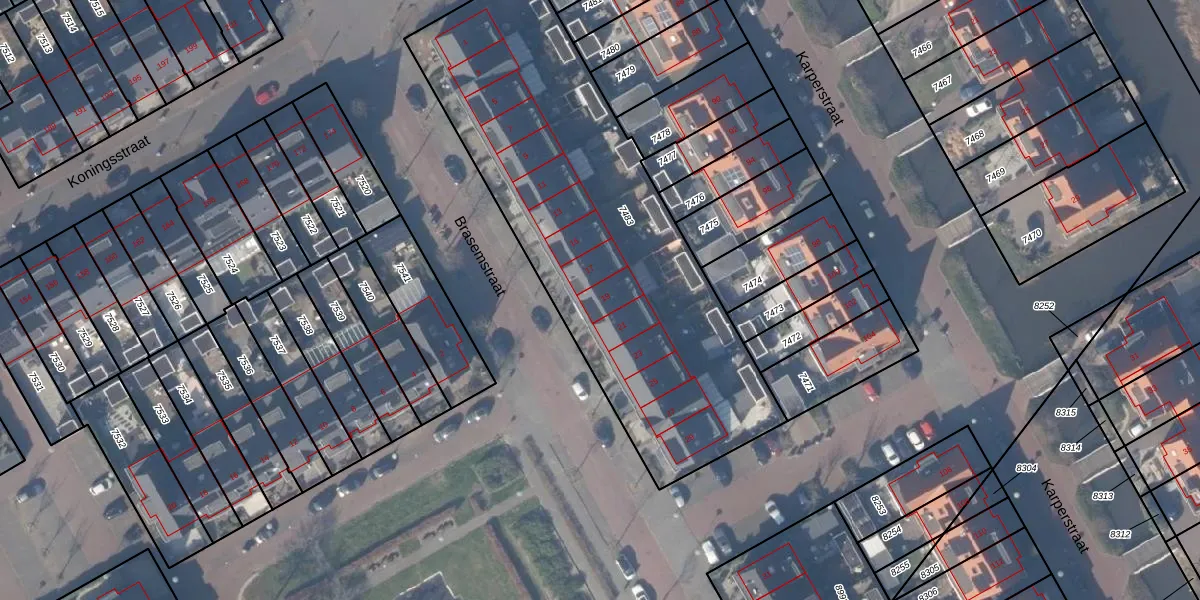 Het perceel waarop Brasemstraat 19 staat heeft een oppervlakte van 2104 m². Dit is een zeer groot perceel. De perceeloppervlakte wordt geregistreerd door het Kadaster. Gedetailleerde informatie over de maten van dit perceel kunt u vinden in het rapport Kadastrale kaart met maatvoering van Brasemstraat 19.