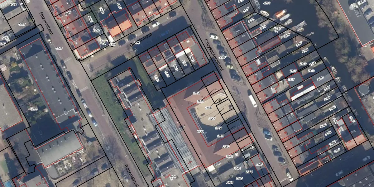 Het perceel waarop Chrysantenstraat 12 staat heeft een oppervlakte van 1895 m². Dit is een zeer groot perceel. De perceeloppervlakte wordt geregistreerd door het Kadaster. Gedetailleerde informatie over de maten van dit perceel kunt u vinden in het rapport Kadastrale kaart met maatvoering van Chrysantenstraat 12.