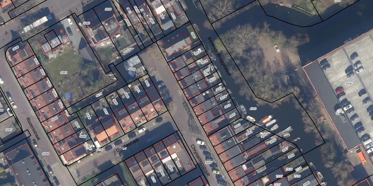 Chrysantenstraat 7 is gelegen op kadastraal perceel AMR03G3016. Deze kadastrale aanduiding is uniek en wordt gebruikt door het Kadaster om eigendomsrechten en andere zakelijke rechten vast te leggen. Het perceel maakt onderdeel uit van de kadastrale gemeente Aalsmeer.