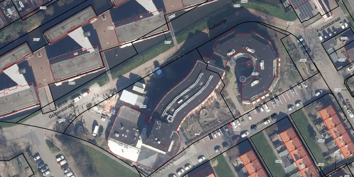 Het perceel waarop Clematisstraat 16-110 staat heeft een oppervlakte van 3502 m². Dit is een zeer groot perceel. De perceeloppervlakte wordt geregistreerd door het Kadaster. Gedetailleerde informatie over de maten van dit perceel kunt u vinden in het rapport Kadastrale kaart met maatvoering van Clematisstraat 16-110.