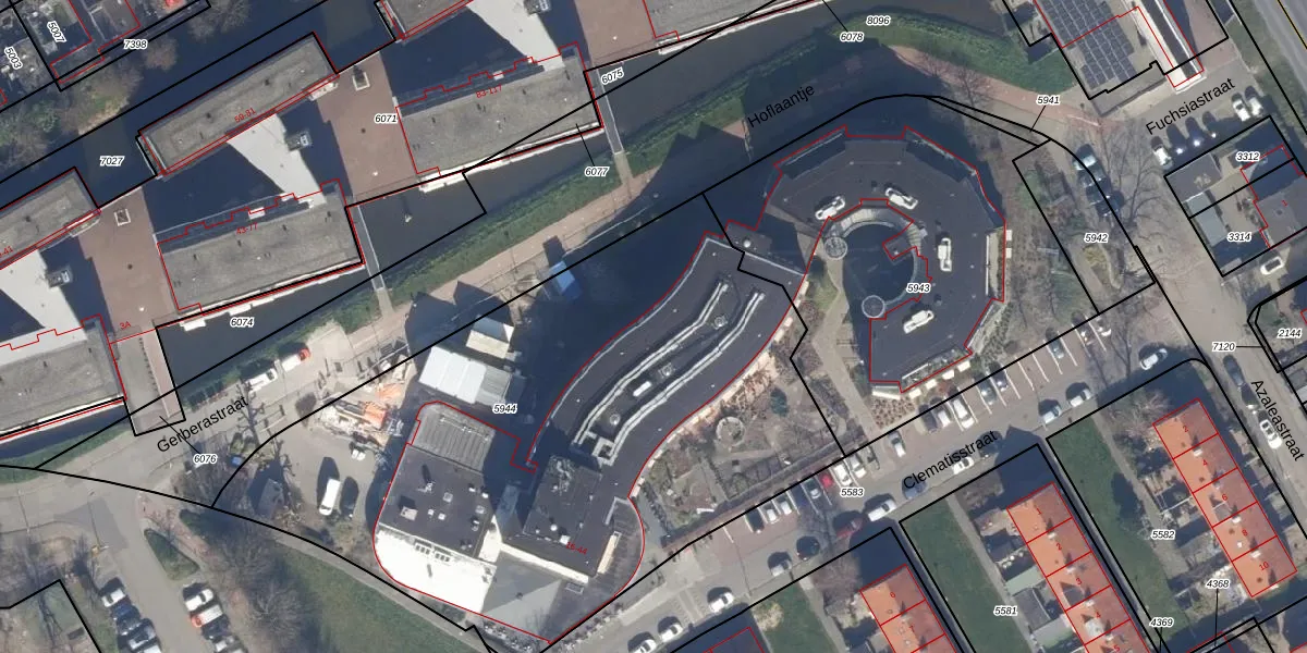 Het perceel waarop Clematisstraat 16-112 staat heeft een oppervlakte van 3502 m². Dit is een zeer groot perceel. De perceeloppervlakte wordt geregistreerd door het Kadaster. Gedetailleerde informatie over de maten van dit perceel kunt u vinden in het rapport Kadastrale kaart met maatvoering van Clematisstraat 16-112.