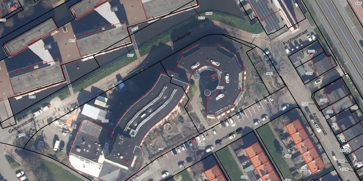 Het perceel waarop Clematisstraat 16-115 staat heeft een oppervlakte van 3502 m². Dit is een zeer groot perceel. De perceeloppervlakte wordt geregistreerd door het Kadaster. Gedetailleerde informatie over de maten van dit perceel kunt u vinden in het rapport Kadastrale kaart met maatvoering van Clematisstraat 16-115.