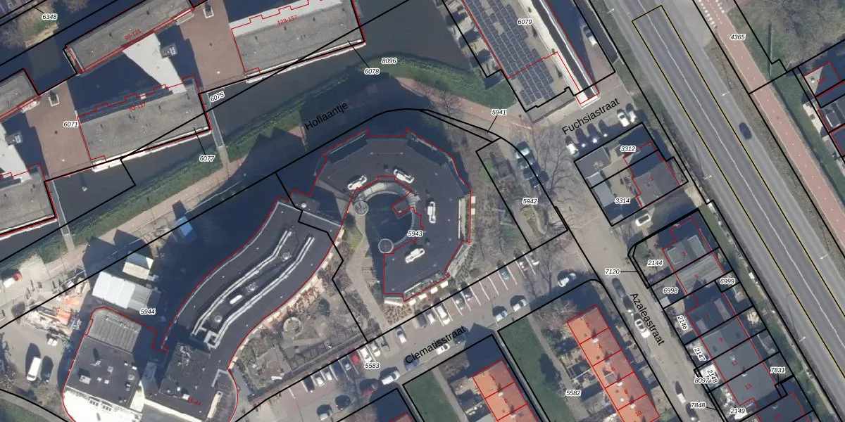 Het adres ligt op het perceel AMR03-C-5943, dat zich in de kadastrale gemeente Aalsmeer bevindt. Het perceel is met 1920 m² relatief groot. Het gemiddelde ligt in de kadastrale gemeente Aalsmeer op 1740,11 m². Het kleinste perceel in de kadastrale gemeente is 0 m² groot. De grootste perceeloppervlakte is 98,4 ha. Er zijn 28 adressen aanwezig op het perceel. De huidige grenzen van het perceel zijn digitaal in de Basisregistratie Kadaster (BRK) geregistreerd op 15-08-2003.
