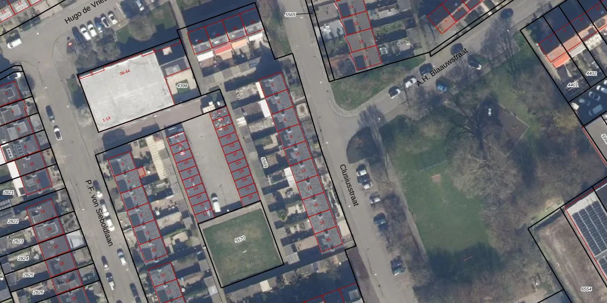 Het perceel waarop Clusiusstraat 10 staat heeft een oppervlakte van 6042 m². Dit is een zeer groot perceel. De perceeloppervlakte wordt geregistreerd door het Kadaster. Gedetailleerde informatie over de maten van dit perceel kunt u vinden in het rapport Kadastrale kaart met maatvoering van Clusiusstraat 10.