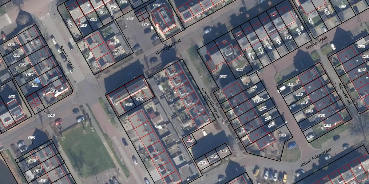 Constantijnstraat 16 is gelegen op kadastraal perceel AMR03B9203. Deze kadastrale aanduiding is uniek en wordt gebruikt door het Kadaster om eigendomsrechten en andere zakelijke rechten vast te leggen. Het perceel maakt onderdeel uit van de kadastrale gemeente Aalsmeer.
