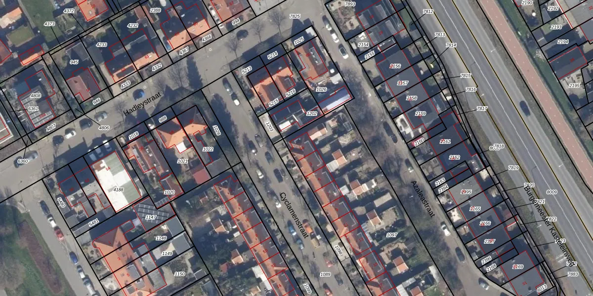 Het perceel waarop Cyclamenstraat 1-a staat heeft een oppervlakte van 2290 m². Dit is een zeer groot perceel. De perceeloppervlakte wordt geregistreerd door het Kadaster. Gedetailleerde informatie over de maten van dit perceel kunt u vinden in het rapport Kadastrale kaart met maatvoering van Cyclamenstraat 1-a.