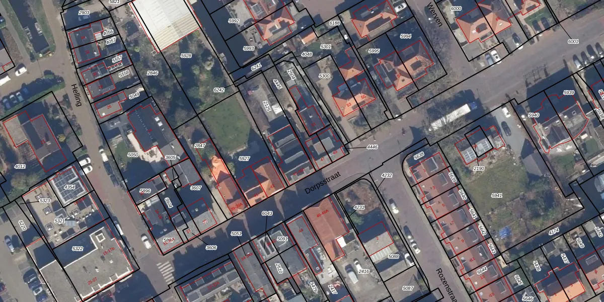 Het perceel waarop Dorpsstraat 45-b staat heeft een oppervlakte van 370 m². Dit is een groot perceel. De perceeloppervlakte wordt geregistreerd door het Kadaster. Gedetailleerde informatie over de maten van dit perceel kunt u vinden in het rapport Kadastrale kaart met maatvoering van Dorpsstraat 45-b.