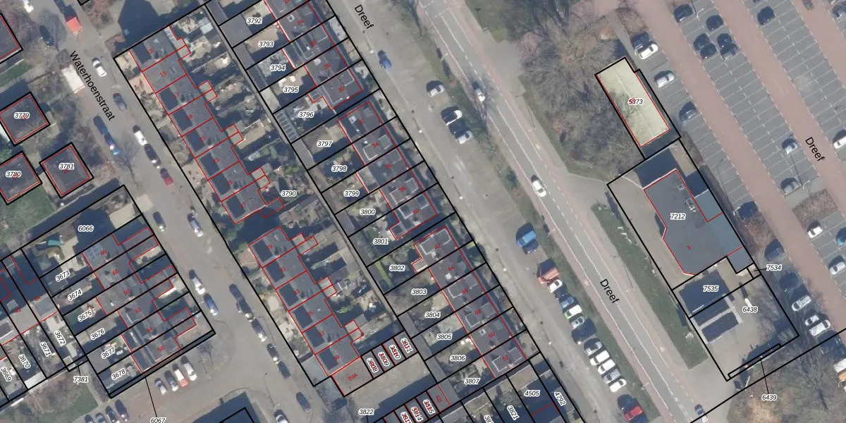 Gebruik de zoekbalk of klik op een perceel voor informatie over de adressen binnen dit perceel.
