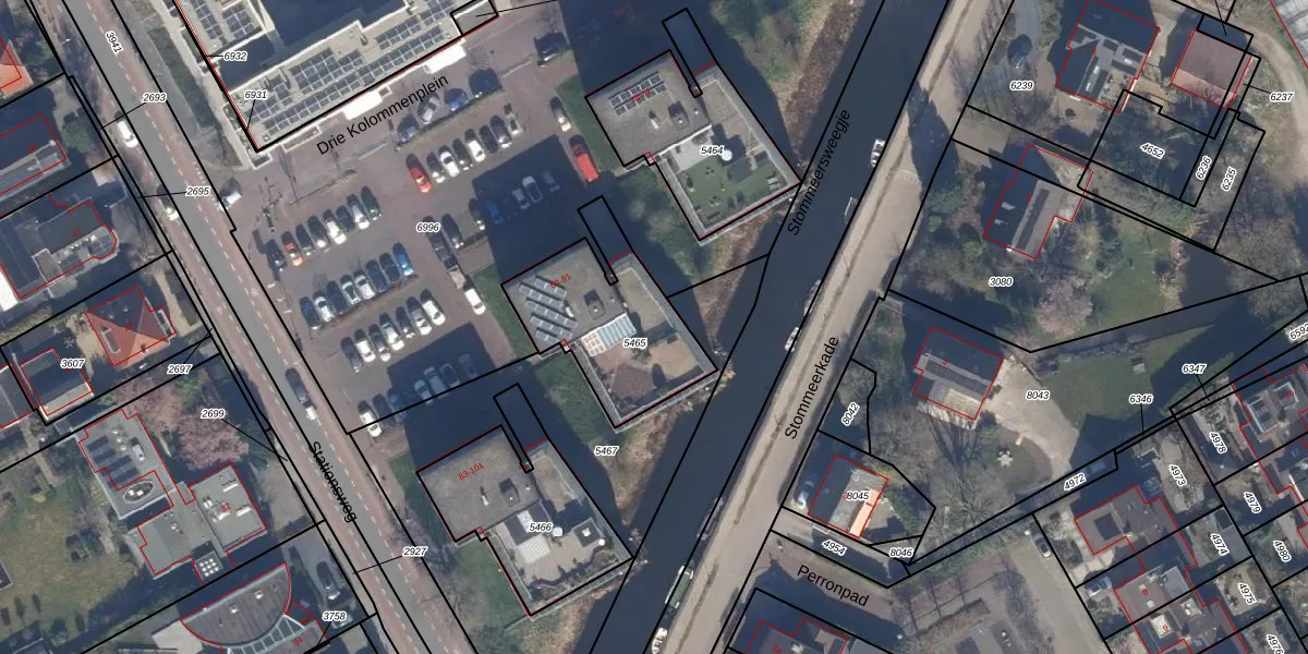 Drie Kolommenplein 65 is gelegen op kadastraal perceel AMR03G5465. Deze kadastrale aanduiding is uniek en wordt gebruikt door het Kadaster om eigendomsrechten en andere zakelijke rechten vast te leggen. Het perceel maakt onderdeel uit van de kadastrale gemeente Aalsmeer.