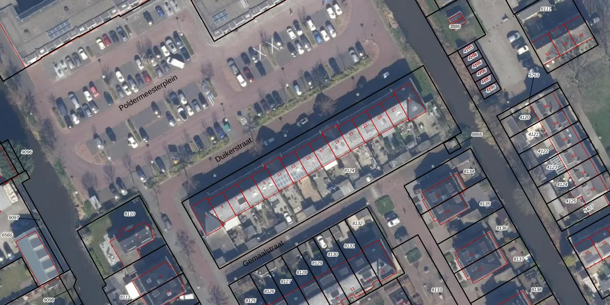 Het perceel waarop Duikerstraat 15 staat heeft een oppervlakte van 2297 m². Dit is een zeer groot perceel. De perceeloppervlakte wordt geregistreerd door het Kadaster. Gedetailleerde informatie over de maten van dit perceel kunt u vinden in het rapport Kadastrale kaart met maatvoering van Duikerstraat 15.