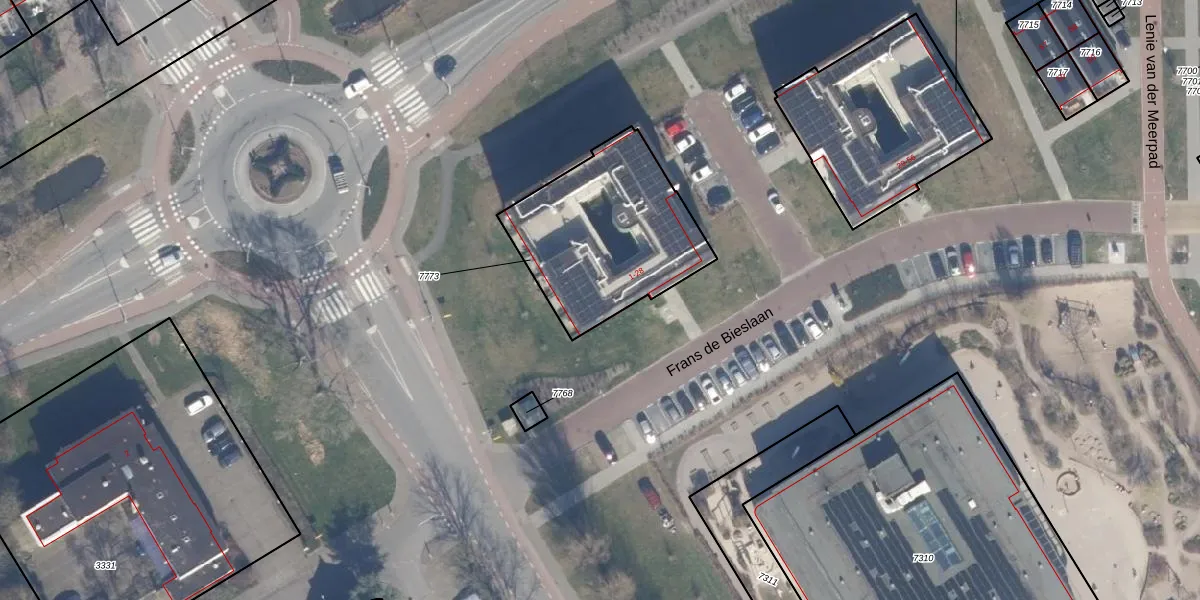 Frans de Bieslaan 1 is gelegen op kadastraal perceel AMR03C7773. Deze kadastrale aanduiding is uniek en wordt gebruikt door het Kadaster om eigendomsrechten en andere zakelijke rechten vast te leggen. Het perceel maakt onderdeel uit van de kadastrale gemeente Aalsmeer.
