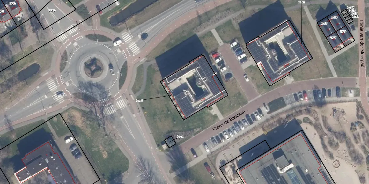 Het perceel waarop Frans de Bieslaan 13 staat heeft een oppervlakte van 695 m². Dit is een groot perceel. De perceeloppervlakte wordt geregistreerd door het Kadaster. Gedetailleerde informatie over de maten van dit perceel kunt u vinden in het rapport Kadastrale kaart met maatvoering van Frans de Bieslaan 13.