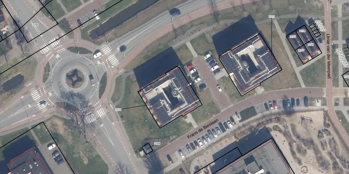 Het perceel waarop Frans de Bieslaan 19 staat heeft een oppervlakte van 695 m². Dit is een groot perceel. De perceeloppervlakte wordt geregistreerd door het Kadaster. Gedetailleerde informatie over de maten van dit perceel kunt u vinden in het rapport Kadastrale kaart met maatvoering van Frans de Bieslaan 19.