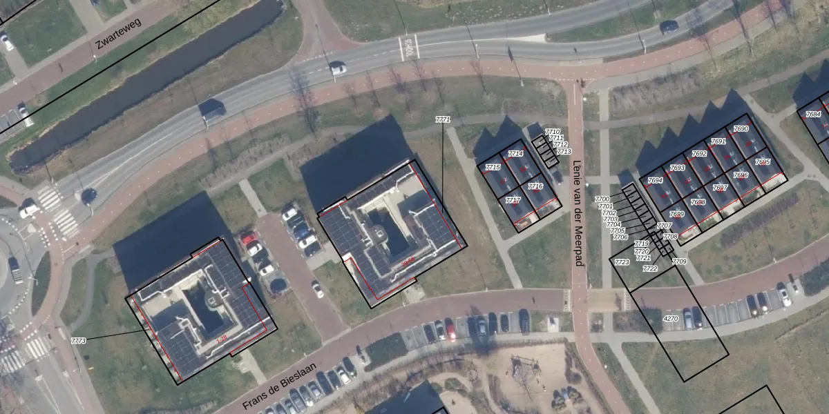 Het perceel waarop Frans de Bieslaan 44 staat heeft een oppervlakte van 695 m². Dit is een groot perceel. De perceeloppervlakte wordt geregistreerd door het Kadaster. Gedetailleerde informatie over de maten van dit perceel kunt u vinden in het rapport Kadastrale kaart met maatvoering van Frans de Bieslaan 44.