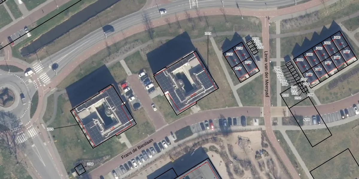 Het perceel waarop Frans de Bieslaan 48 staat heeft een oppervlakte van 695 m². Dit is een groot perceel. De perceeloppervlakte wordt geregistreerd door het Kadaster. Gedetailleerde informatie over de maten van dit perceel kunt u vinden in het rapport Kadastrale kaart met maatvoering van Frans de Bieslaan 48.