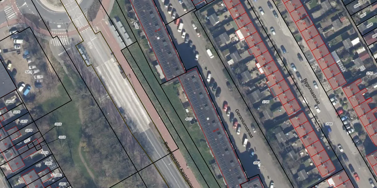 Het perceel waarop Geraniumstraat 73 staat heeft een oppervlakte van 1282 m². Dit is een zeer groot perceel. De perceeloppervlakte wordt geregistreerd door het Kadaster. Gedetailleerde informatie over de maten van dit perceel kunt u vinden in het rapport Kadastrale kaart met maatvoering van Geraniumstraat 73.