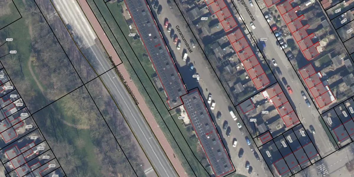 Het perceel waarop Geraniumstraat 91 staat heeft een oppervlakte van 1282 m². Dit is een zeer groot perceel. De perceeloppervlakte wordt geregistreerd door het Kadaster. Gedetailleerde informatie over de maten van dit perceel kunt u vinden in het rapport Kadastrale kaart met maatvoering van Geraniumstraat 91.